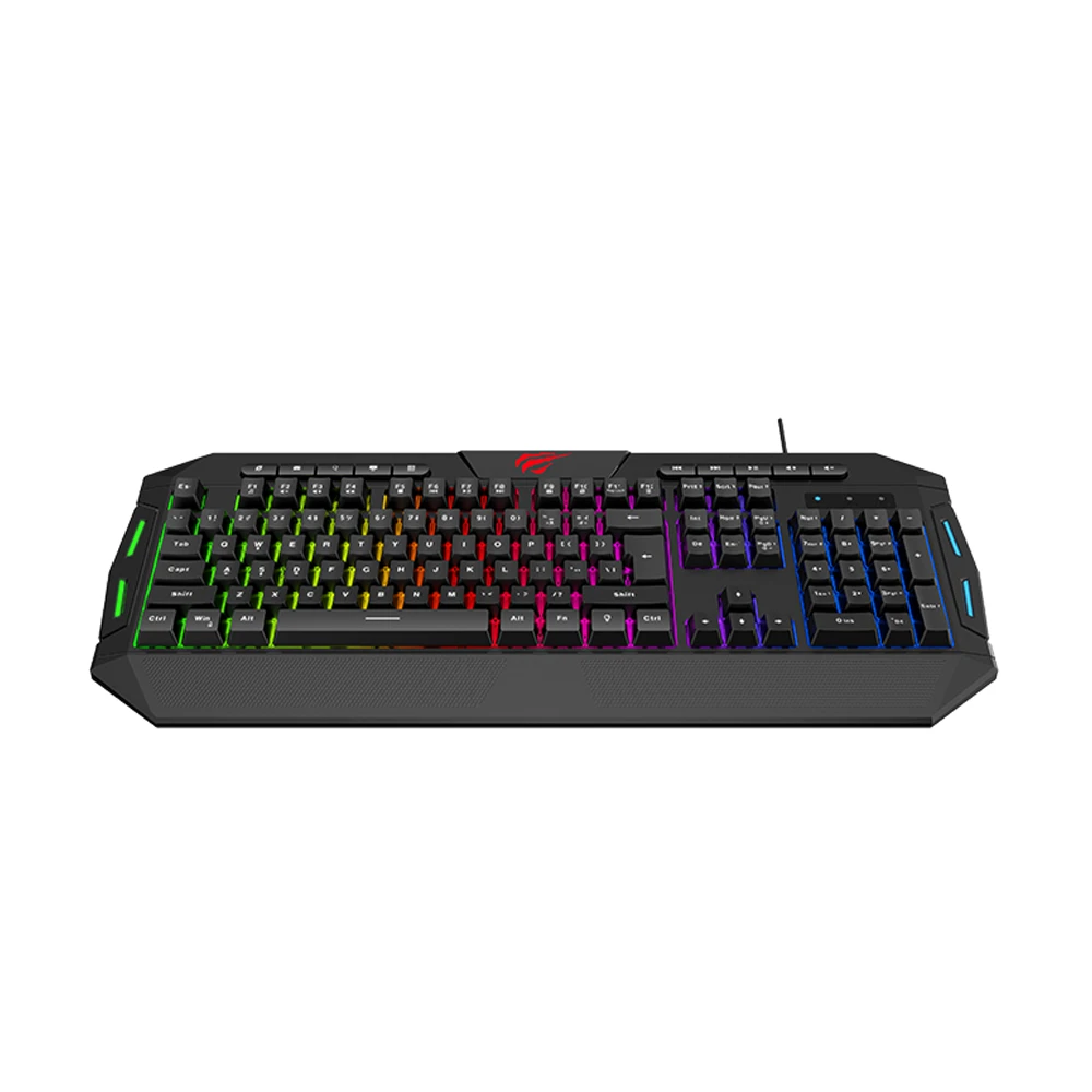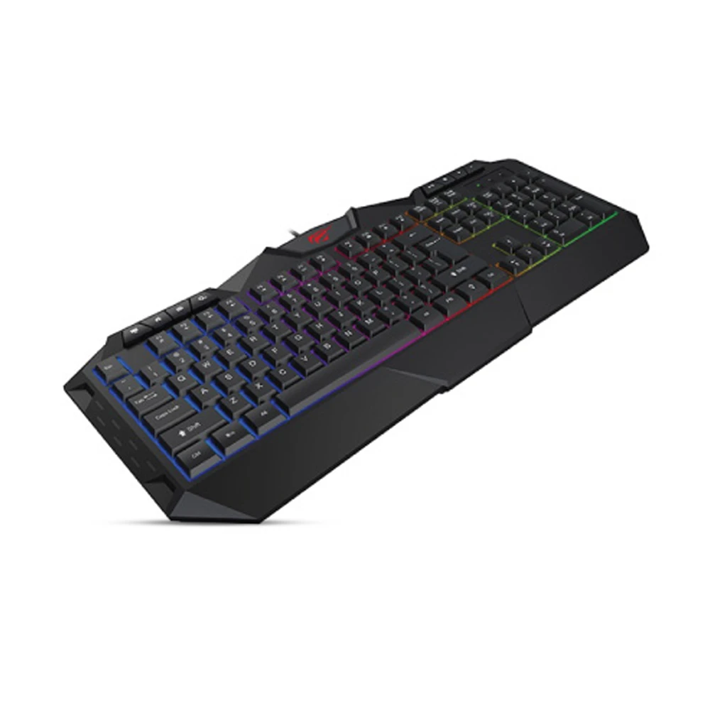Havit KB510L Keyboard is one kind of Multi-Function Backlit Gaming Keyboard. This keyboard comes with FN multimedia keys for quick operations on music play, Volume control and internet browsing to save time. This keyboard is featured with Number of keys: 112, Operating Current: <-160mA, Operating Voltage: 5+-0.5V, Key life: 10000000 times. The new Havit KB510L Backlit Gaming Keyboard is featured with 19 anti-ghosting keys, enable free control, streamlined and human engineering design; elegant and beautiful, FN multimedia keys, 8 standard multimedia keys, All-metal plate, 12 multimedia keys.