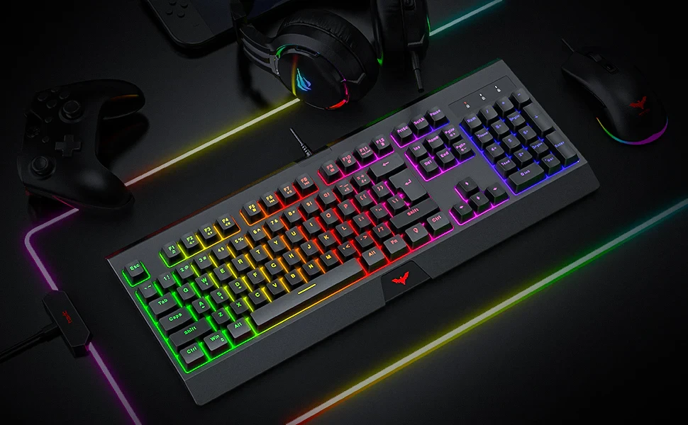 Havit HV-KB858L RGB Backlit Mechanical Gaming Keyboard with BanglaHavit HV-KB858L RGB Backlit Mechanical Gaming Keyboard is able to adjust the brightness and Backlit style. This Gaming Keyboard has 26 anti-ghosting keys, enable free control with 12 multimedia keys, All-metal plate and also it combined with professional mechanical Blue switches and tactile collisions and sound clicks for the best gaming performance. This latest Havit HV-KB858L RGB Backlit Mechanical Gaming Keyboard has 01 year warranty. |
