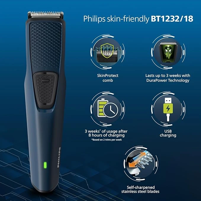 Philips BT1232/18 Beard Trimmer for Men - Cordless Rechargeable with USB Chargi